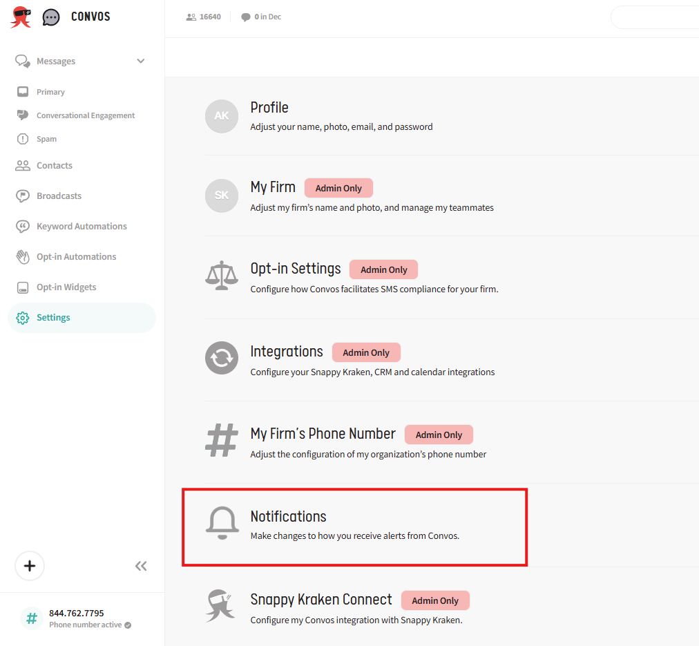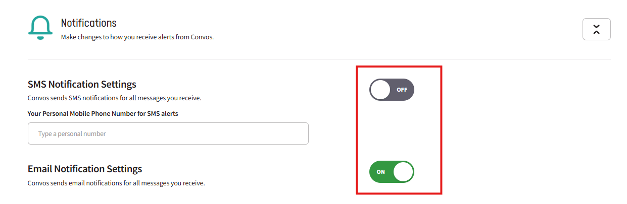 To receive SMS notifications, be sure to add your personal mobile phone number, not your Convos phone number. Adding the Convos phone number will create a message loop and result in continuous, never-ending messages.